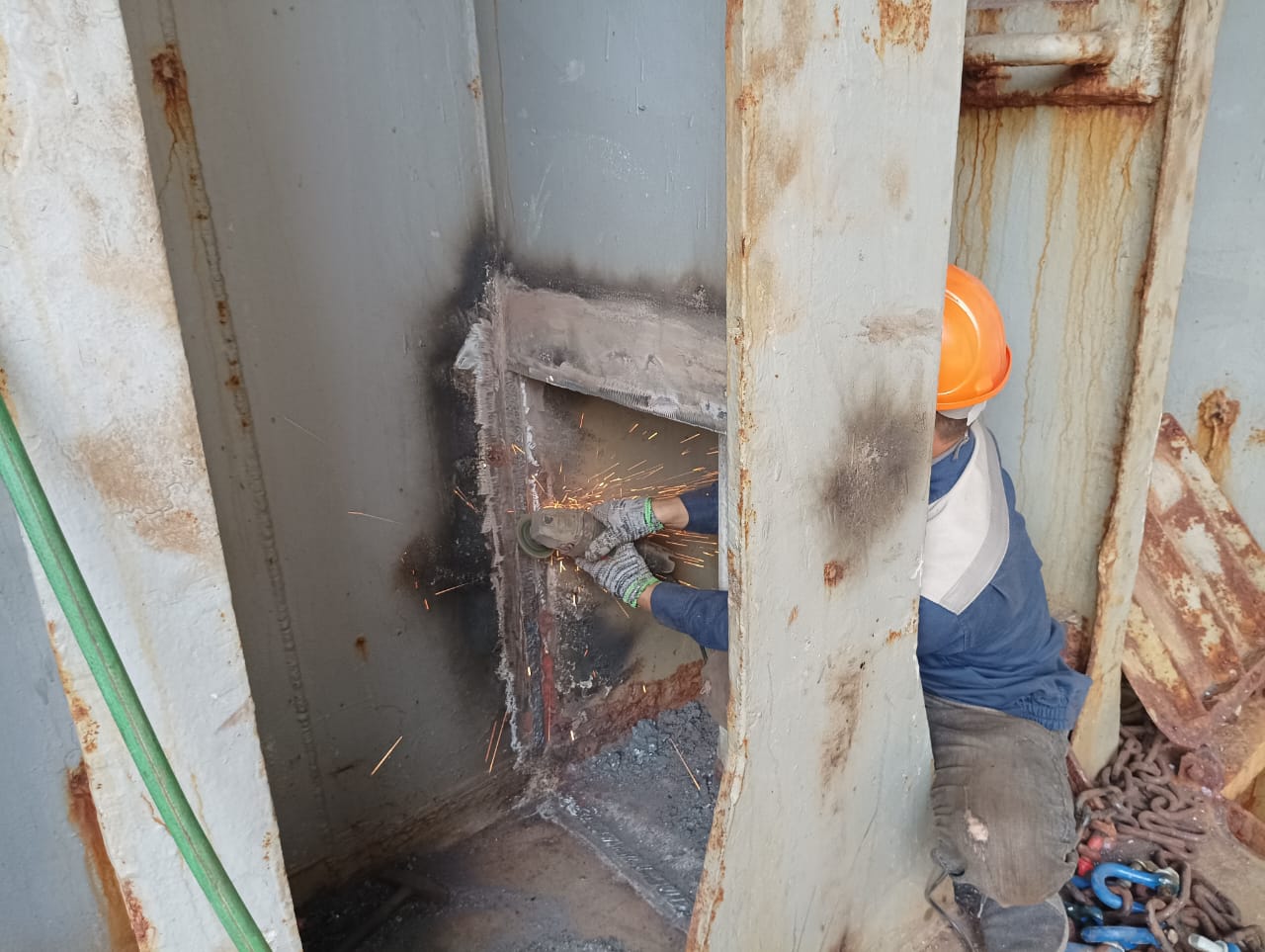 – Dismantling: The damaged or deteriorated sections of the side shell are dismantled and removed. This can involve cutting and removing steel plates, disassembling supporting structures, and carefully removing any attached equipment or fittings.